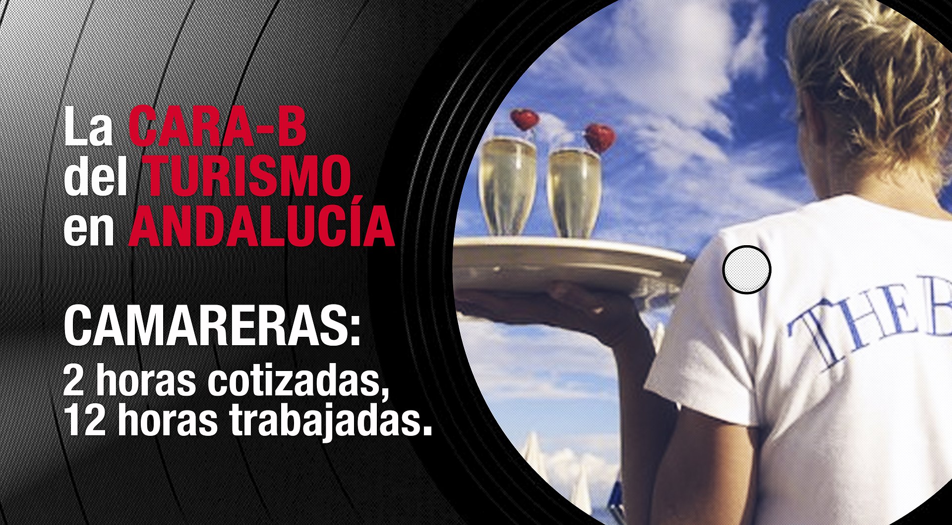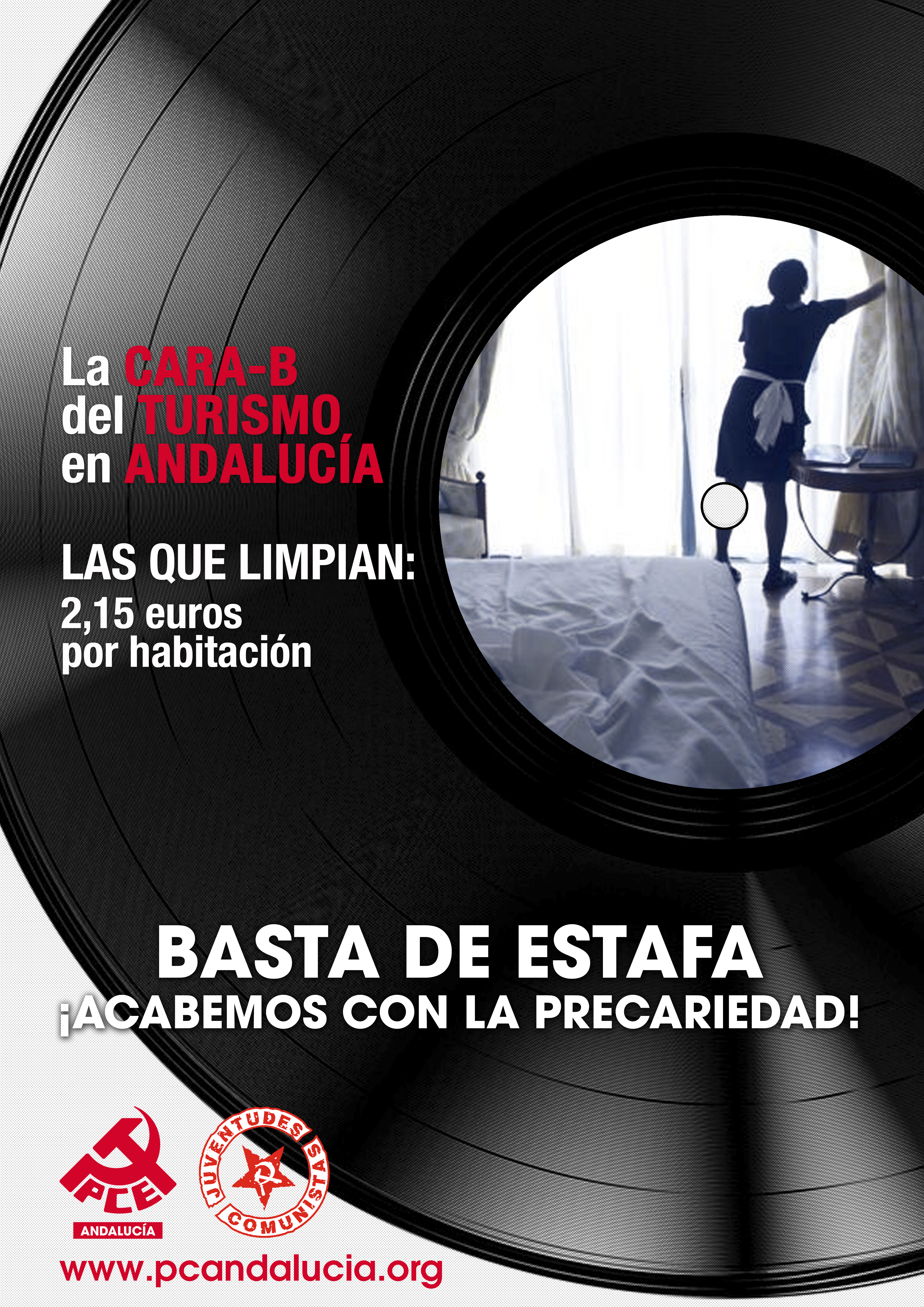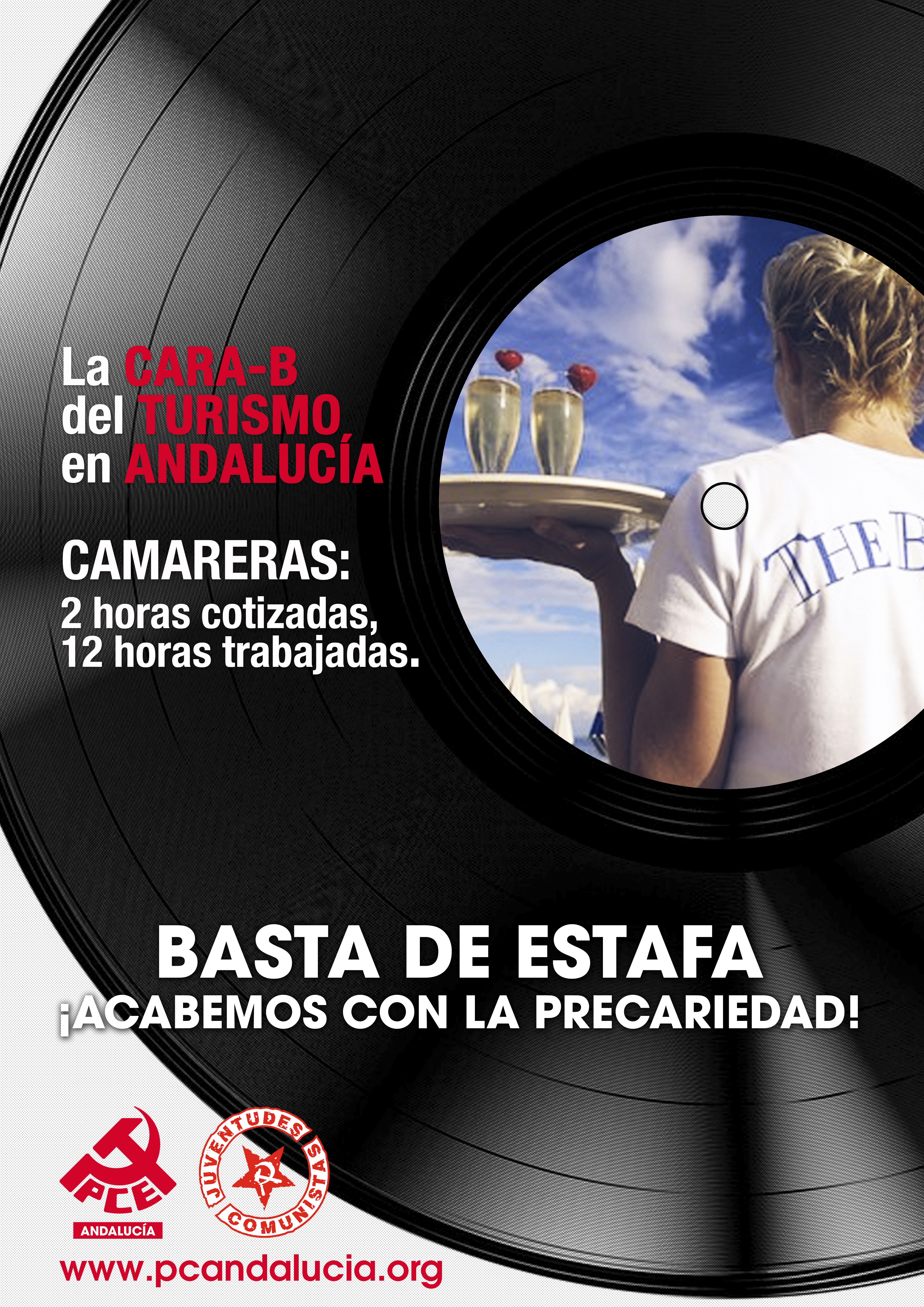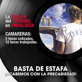 La campaña presenta como claim la Cara B de un disco de vinilo que pretende representar la cara B del turismo en Andalucía. Mientras la cara A son los grandes titulares y cifras que deja el turismo en nuestra tierra (pernoctaciones, visitas, etc…), la cara B nos deja los datos desoladores (precariedad, semiesclavitud, pobreza). El PCA saca a relucir la cara b del disco, que suena a explotación.